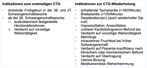 Die Regeln der Mutterschafts-Richtlinien sind für GKV-Patientinnen gültig, sollten aber für Privatpatientinnen gleichermaßen herangezogen werden. In Anlage 2 zu dieser Richtlinie sind Indikationen vorgegeben, wann ein CTG in der Schwangerschaft durchgeführt werden darf. Dabei wird unterschieden nach Indikationen zur erstmaligen CTG-Aufzeichnung und zur Wiederholung.