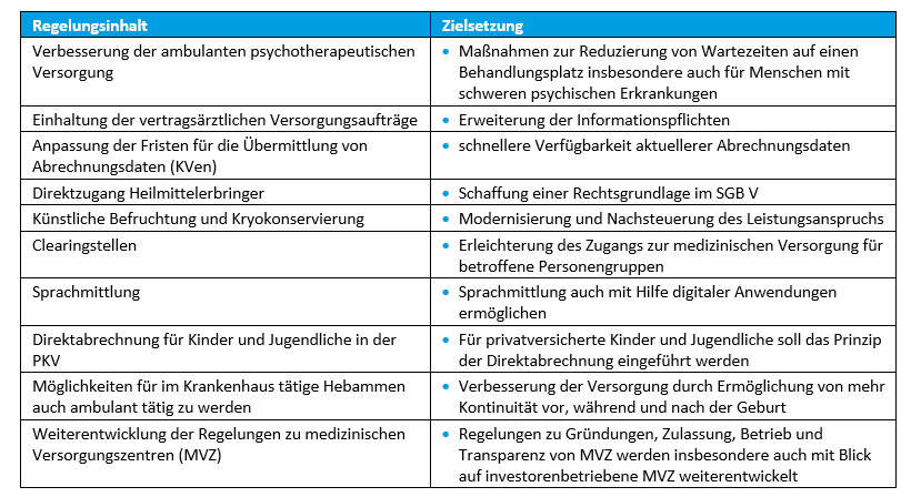 Anfang des Jahres wurden auf der Klausurtagung der SPD von Prof. Lauterbach die Eckpunkte zweier Versorgungsgesetze skizziert, die zahlreiche Neuerungen zum Inhalt haben. Die meisten Punkte, die jetzt umgesetzt werden sollen, wurden von den Ampel-Koalitionären im Koalitionsvertrag vereinbart. Die beiden nachfolgenden Übersichten wurden in der vorliegenden Form veröffentlicht.