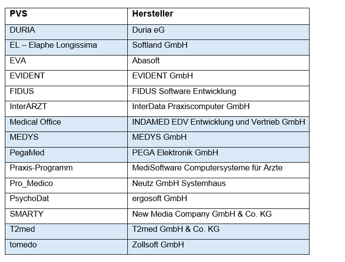 PVS-Hersteller, die diese Anforderungen erfüllen, erhalten das Gütesiegel „PVS mit KBV-Vertrag“. Der Abschluss dieser Rahmenvereinbarung ist für die PVS-Hersteller freiwillig und hat eine Laufzeit von zwei Jahren.