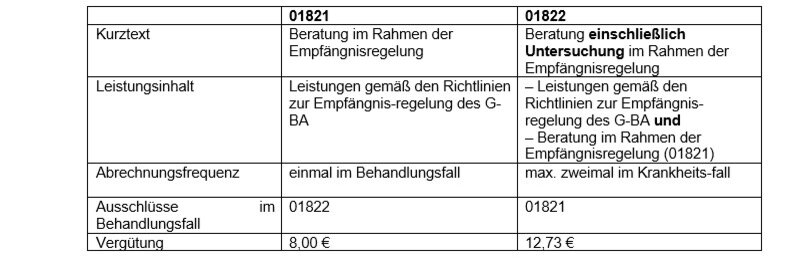 Beide Ziffern gelten als Zuschlag zu den Beratungen zur Empfängnisregelung. Leider werden diese in der Praxis häufig insgesamt vergessen.