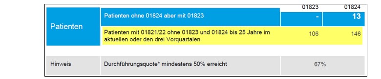 Das bedeutet, dass dieser Praxis für die Abrechnung der GNR 01823 ca. 600 € Leistungsvergütung verloren geht. Es sind sogar 1.200 €, wenn bei diesen Patientinnen auch die Untersuchung einer Urinprobe (GNR 01824) veranlasst wird.